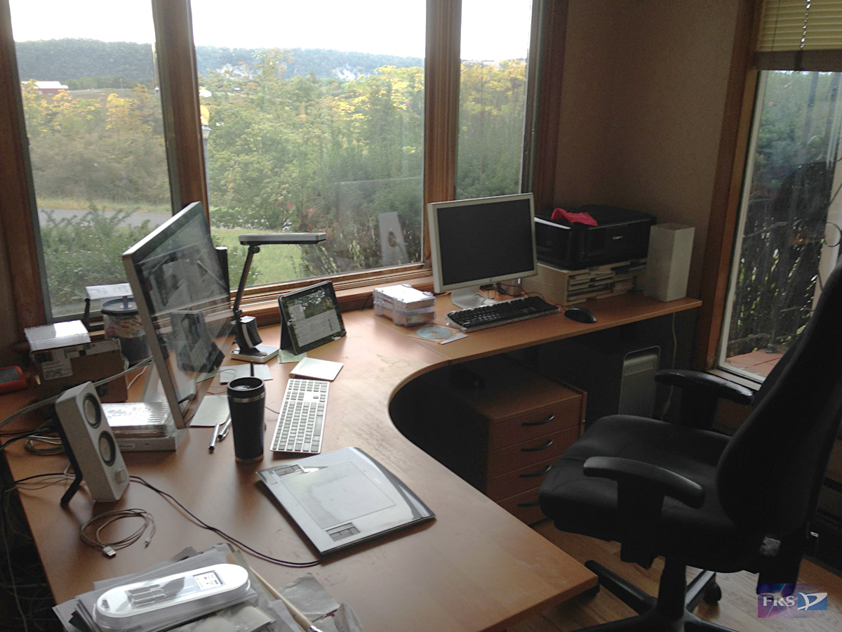 The Studio’s new digs. Before the paperwork caught up and buried my table! Big image if you clicky!